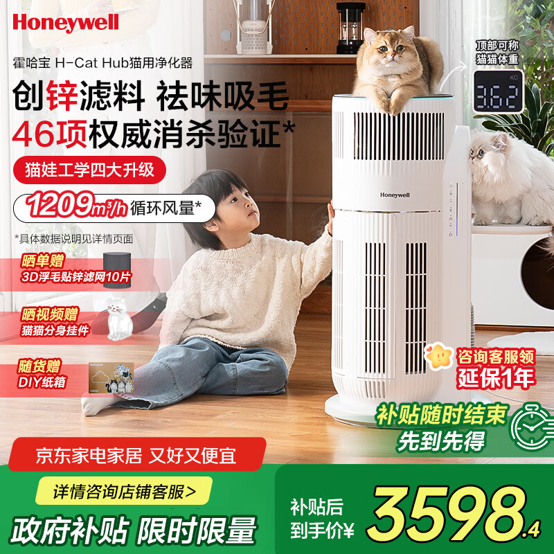 霍尼韦尔(Honeywell)【papi酱同款】宠物猫用空气净化器吸猫毛除甲醛过敏源杀菌消毒霍哈宝H-Cat Hub家电国家补贴