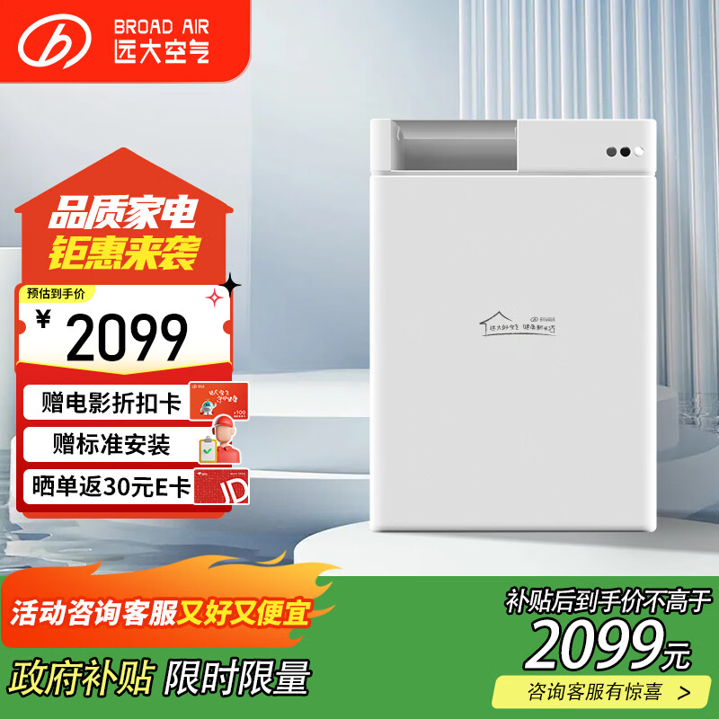 远大(BROAD)新风系统家用壁挂式新风机 双向流通风换气全热回收 除雾霾除甲醛空气净化空调伴侣FF100-Pro