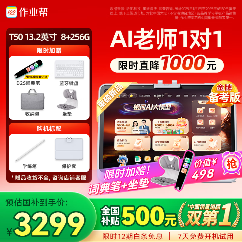 作业帮学习机T50国家补贴500元新品AI超级老师1对1名师大招课平板电脑小学到高中学练辅导机13.2''8+256G