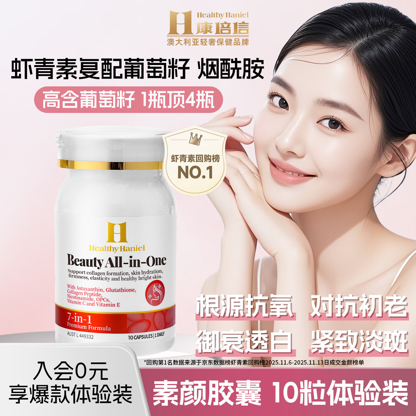 Healthy Haniel虾青素烟酰胺谷胱甘肽胶原蛋白原花青素葡萄籽抗衰氧化美白黑色素