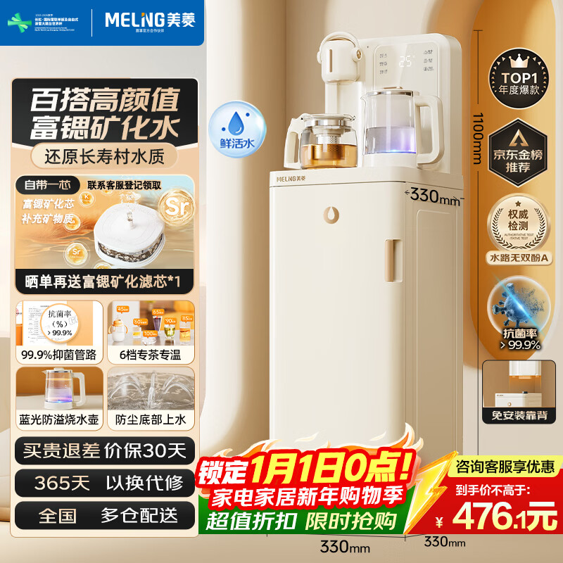 美菱富锶矿化防溢茶吧机家用多功能办公室立式饮水机茶吧柜智能自动上水烧水壶电热水壶多段控温MC-N08