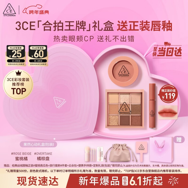 3ce眼颊两件套 眼影九宫格腮红蜜桃橘套装生日礼物新年礼物送女友