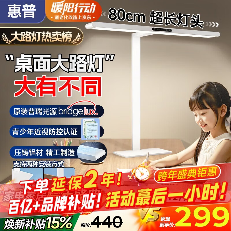 惠普全新升级LED学生儿童卧室防蓝光立式桌面大路灯护眼台灯 普瑞光