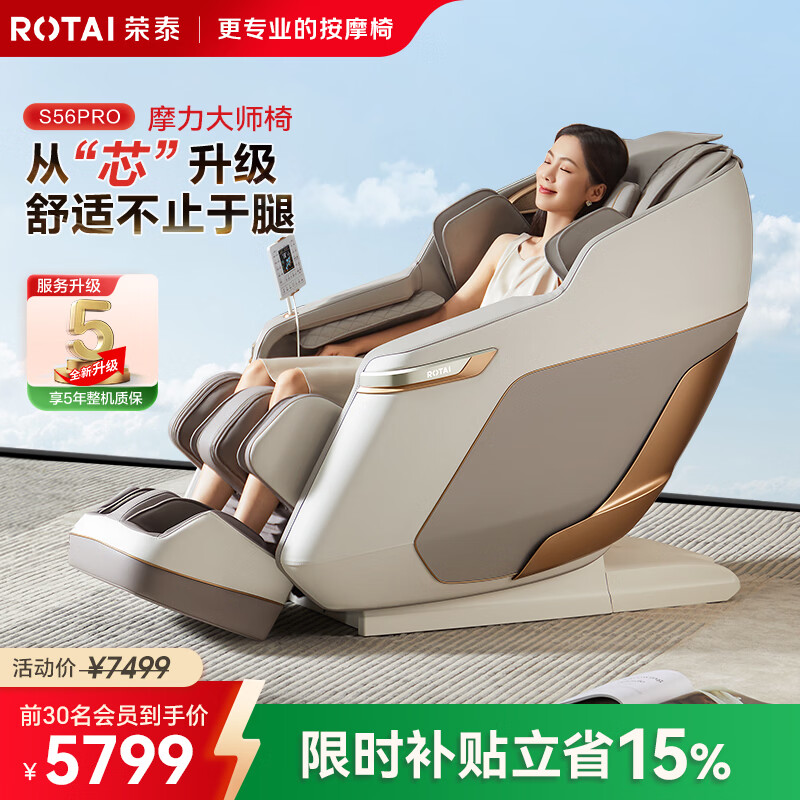 荣泰(RONGTAI)【上市企业】按摩椅家用全身按摩全自动2026老人用按摩沙发送父母生日礼物 S56pro 杏仁灰