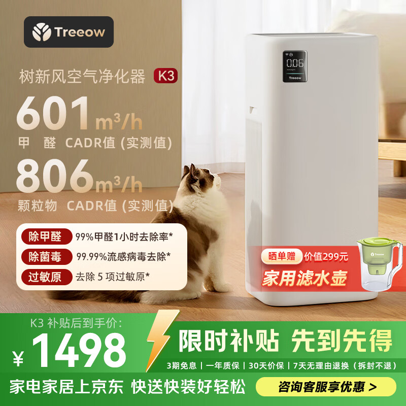 树新风空气净化器 除甲醛异味除花粉过敏认证 家用宠物大空间全效K3净化器