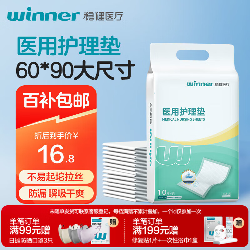 稳健医用成人护理垫一次性防渗隔尿老人婴儿产妇产褥垫60*90cm10片/袋