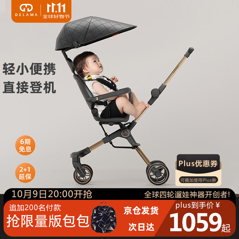 德拉玛(DELAMA)S1遛娃神器婴儿推车高景观360度旋转双向轻便折叠手推车轻便推车 S1黑耀金