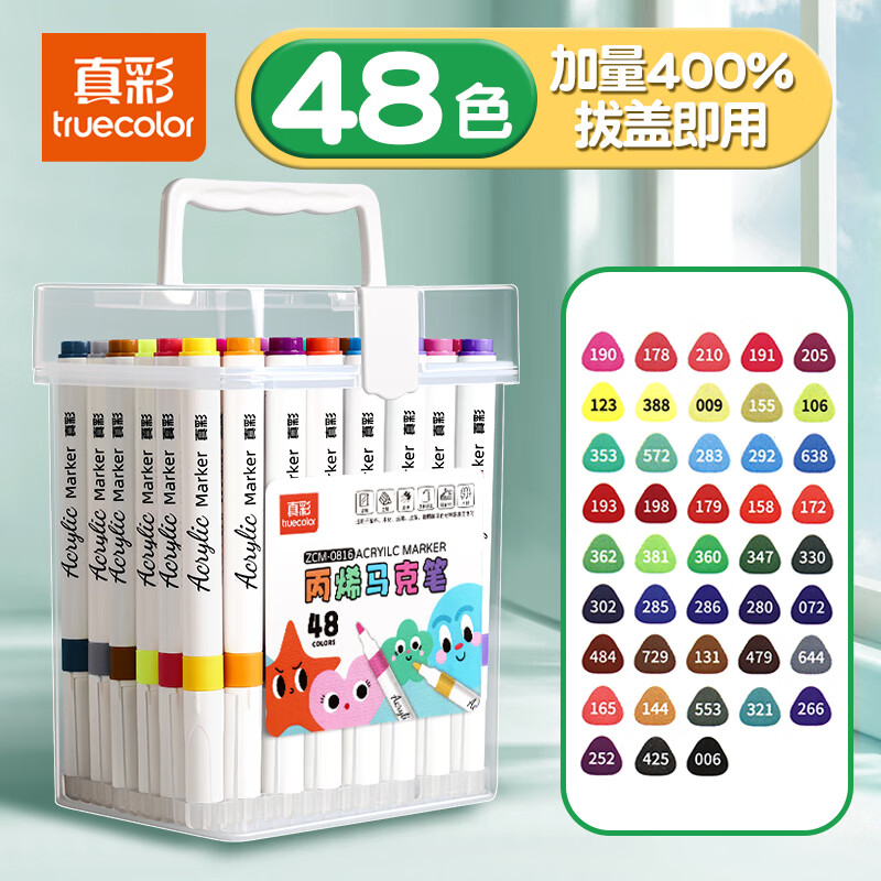 真彩(TRUECOLOR)48色丙烯马克笔小学生专用美术不透色可叠色彩笔彩色笔画笔幼儿园水性绘画安全0816儿童元旦节礼物