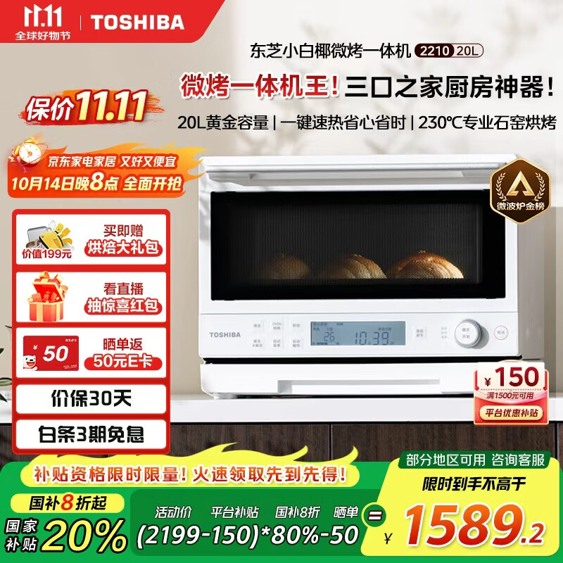 东芝(TOSHIBA)【国家补贴20%】小白椰微波炉烤箱一体机mini小型家用微烤一体机厨房家用白色20L ER-YR2210CNW