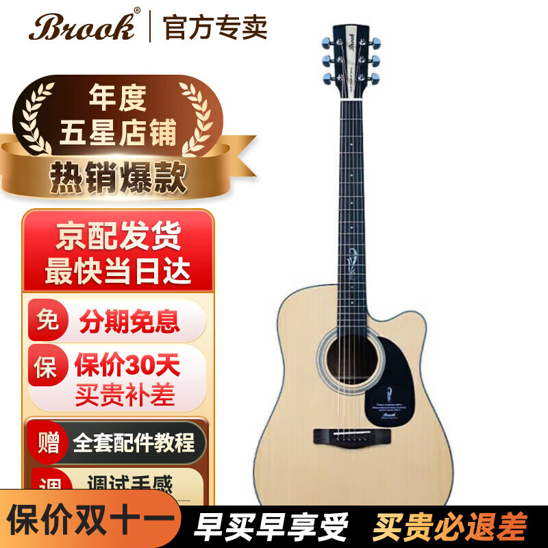 BROOK 布洛克布鲁克v12吉他单板民谣吉他面单木吉他初学者乐器 41英寸原木色缺角V12N-DCM
