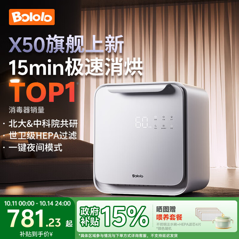 波咯咯(bololo)奶瓶消毒器消毒烘干一体机紫外线消毒柜婴儿LE无汞灯珠宝宝消毒器 全能X50-33颗黄金灯珠 25L 15min极速消烘+智控APP