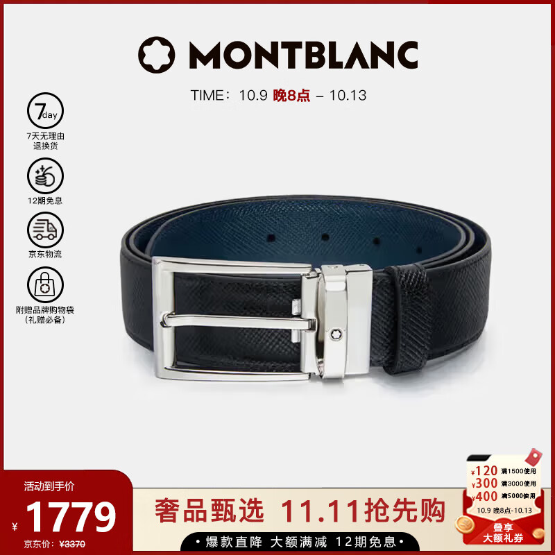 万宝龙MONTBLANC 黑色/靛蓝色双面腰带皮带120x3.5cm 118438 礼物