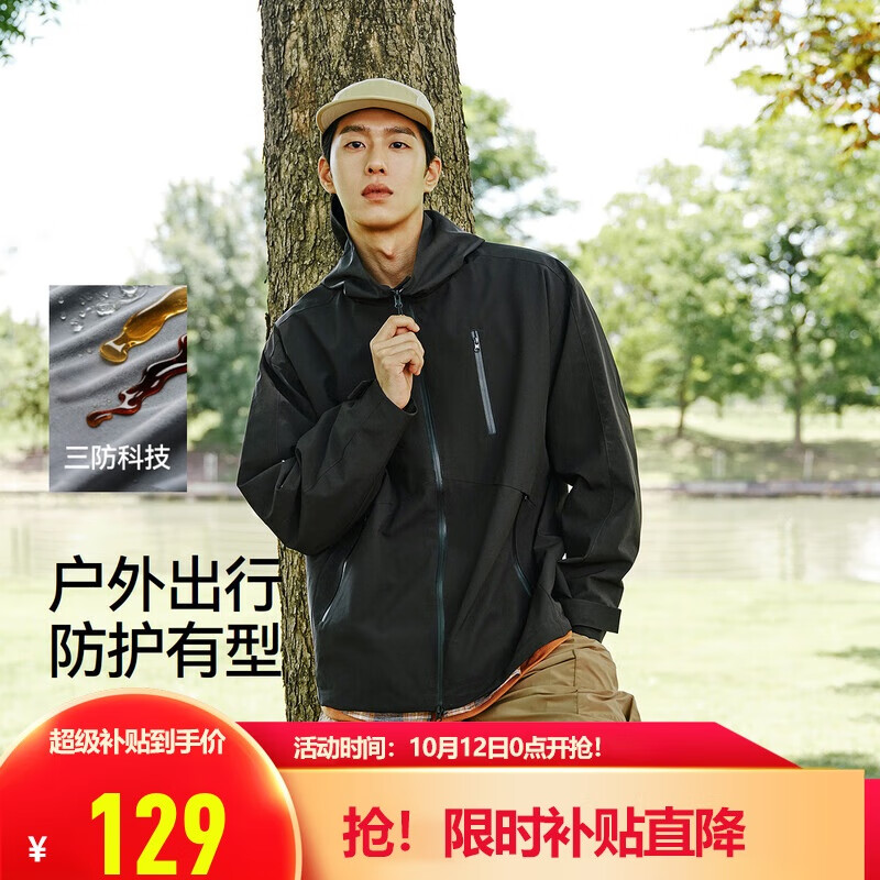 森马(Semir)三防夹克男户外登山徒步露营情侣男士外套秋季中性款101524108206