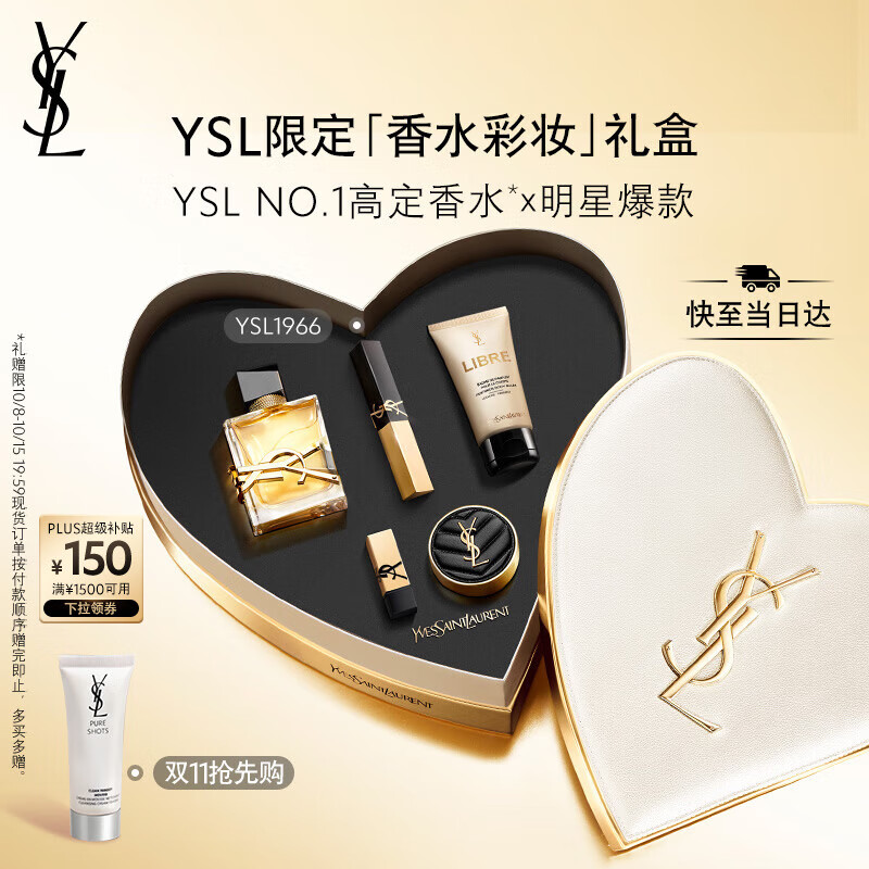 圣罗兰(YSL)口红香水礼盒全新小金条1966+自由之水生日礼物送女友