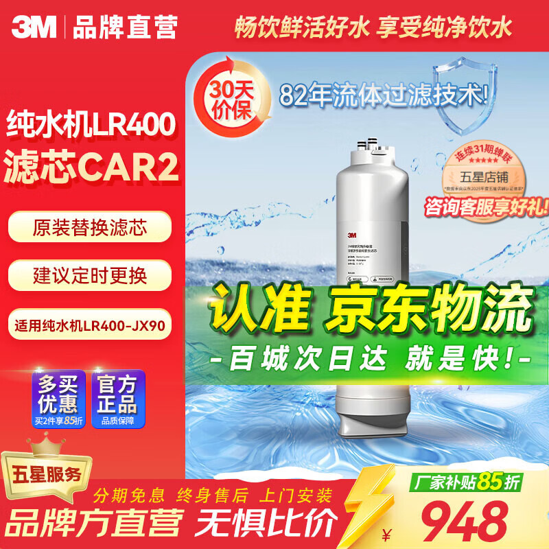 3M净水器家用 净水机 LR400-JX90 替换滤芯 C1C2C3 原装替换滤芯 R400J-CAR2 反渗透膜滤芯