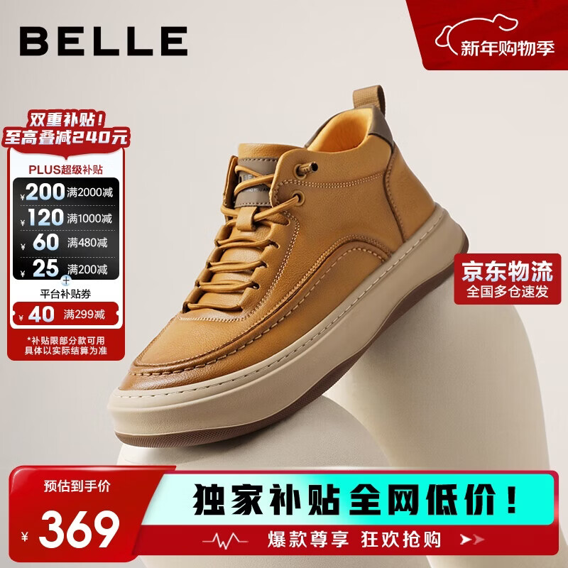 百丽男鞋加绒保暖冬休闲工装鞋厚底高帮板鞋8NE11DM4 黄单里-高帮 42