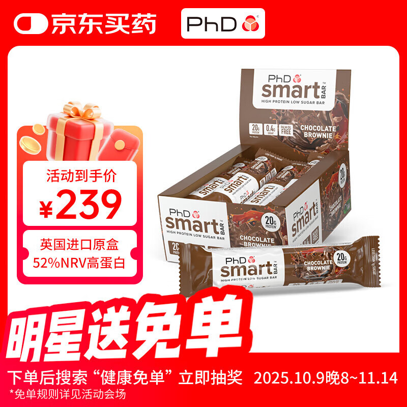PhD智选蛋白棒64g*12支巧克力布朗尼能量代餐高健身运动饱腹食品减肥