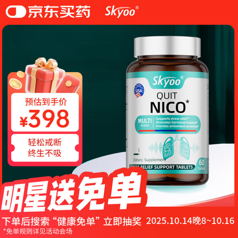 Skyoo美国品牌肺部清道夫戒烟片清肺吸烟者养肺吸烟替代轻松戒断 1瓶装