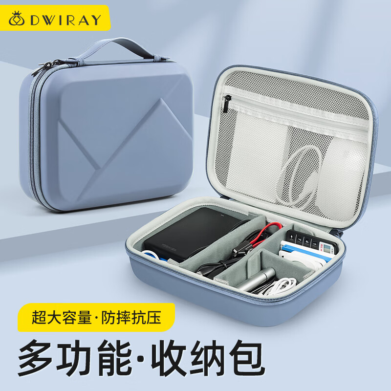 帝伊工坊数据线数码收纳包U盘u盾移动硬盘充电器笔记本电脑适配器鼠标大容量硬壳多功能旅行配件收纳盒