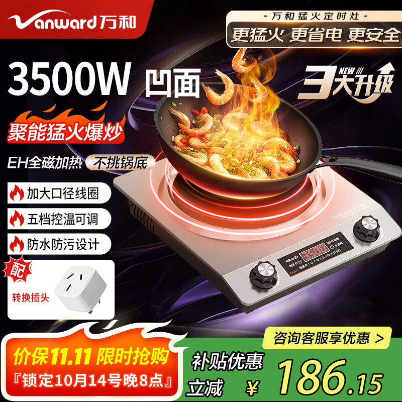 万和凹面电磁炉家用大功率电磁灶电炒炉电炉灶商用火锅灶炒菜猛火爆炒预约定时 WZ-CL350-X2