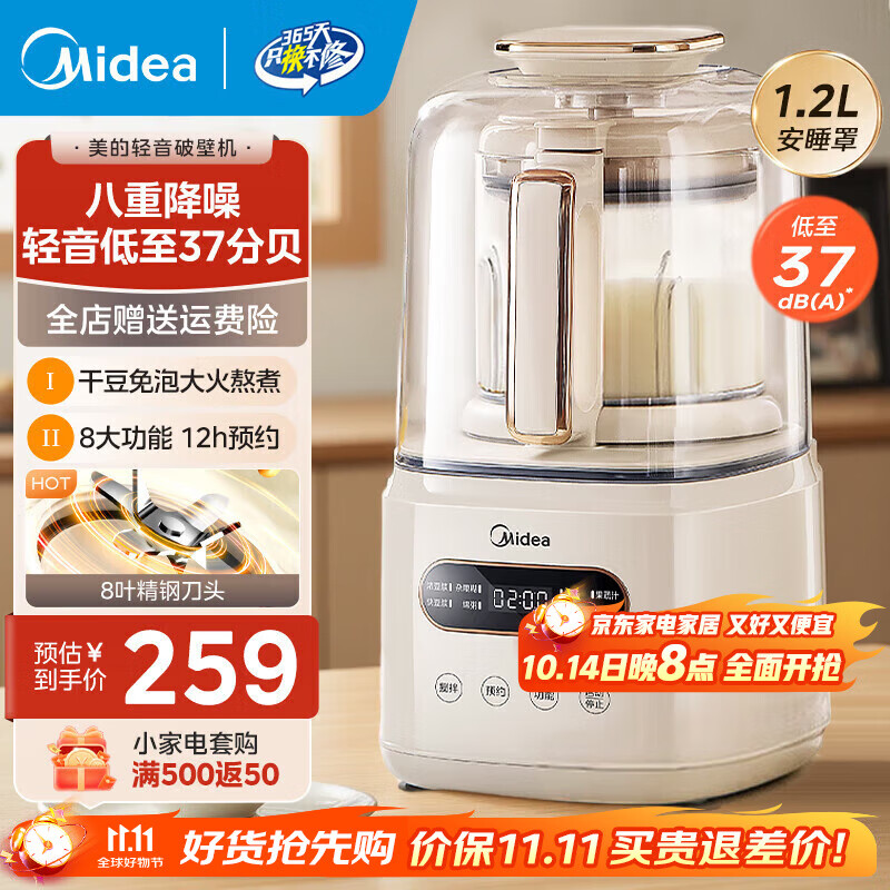 美的(Midea)破壁机家用降噪低音大容量豆浆机智能全自动免煮五谷杂粮多功能辅食机料理机榨汁机 【轻音破壁1.2L】PB60P2-028