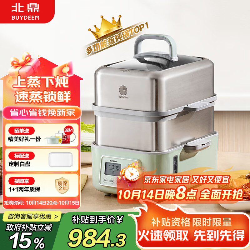 北鼎(Buydeem)电蒸锅蒸锅多功能锅蒸炖煮一体双层定时保温家用大容量二层婴儿适用自动免看火 厨房好物G5541