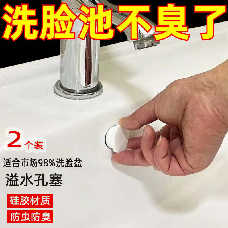 贾恩斯洗脸盆溢水孔塞子面盆溢水口侧边防臭洗手水池漏水通用堵头密封盖 【2个装】溢水孔塞-98%通用