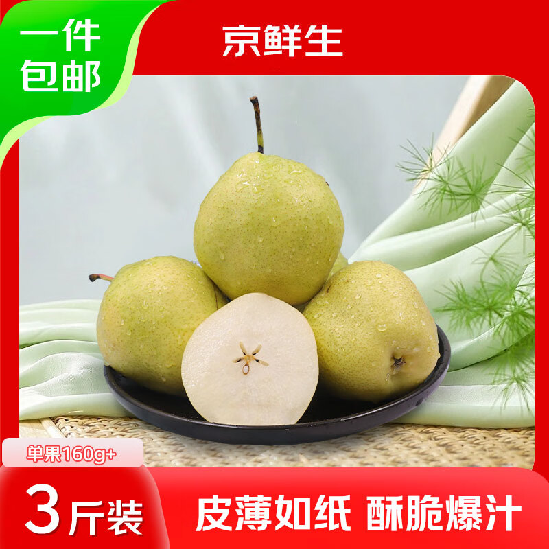 京鲜生 甘肃祁连山麒香玉梨 甘草香梨 3斤装单果160g+ 生鲜水果源头直发