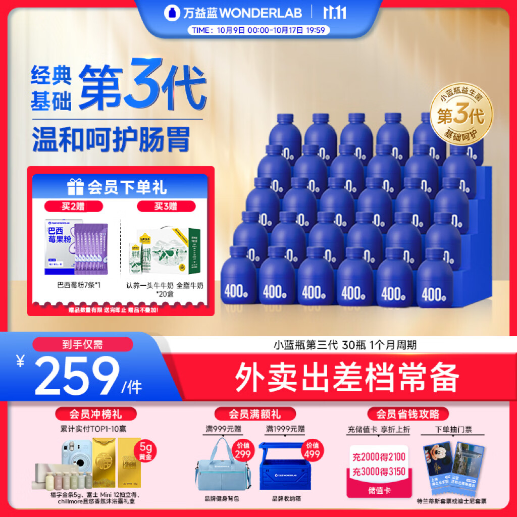万益蓝(WONDERLAB)小蓝瓶益生菌10瓶*3 肠胃成人益生菌3.0
