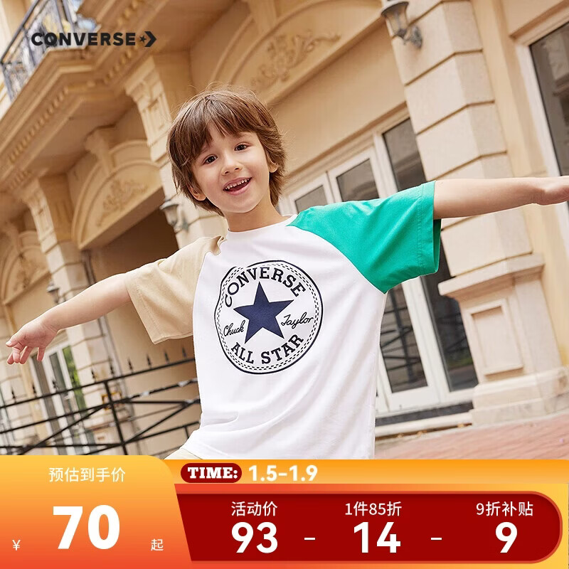 匡威Converse童装男女童凉感短袖T恤夏季新款插肩袖儿童休闲上衣