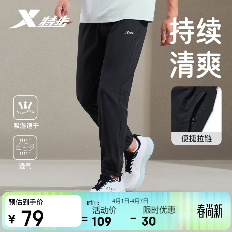 特步男子夏季透气冰丝速干梭织运动裤时尚百搭