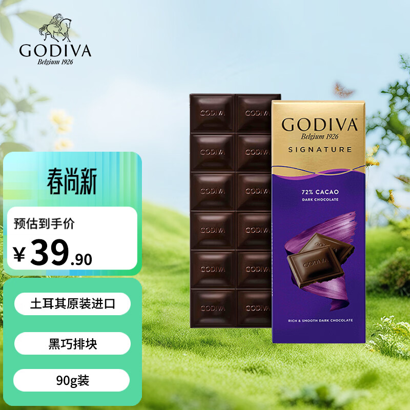 歌帝梵(Godiva)72%黑巧克力砖块90克原装进口休闲零食下午茶节日礼物生日伴手礼