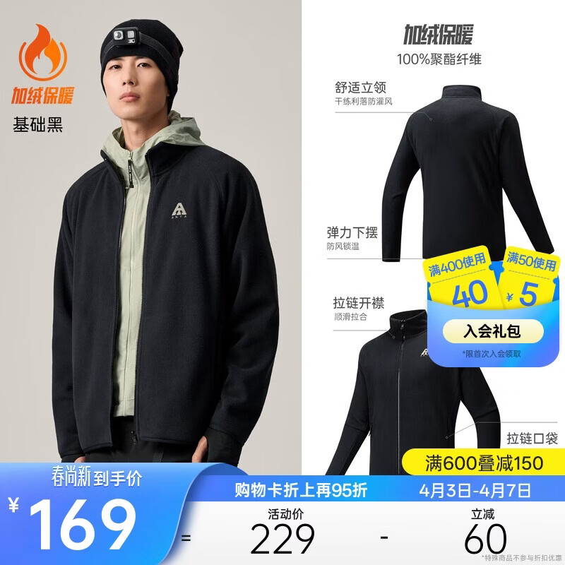 安踏【Z哥同款】火壳抓绒衣丨大地之壳3.0冬季男子内胆摇粒绒立领外套