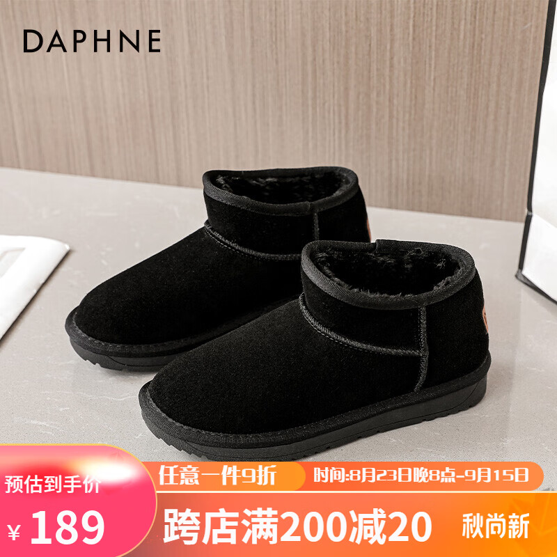 达芙妮雪地靴女冬季2021秋冬款加绒保暖女靴百搭简约棉鞋 浅口黑色 38