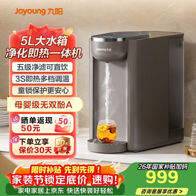 九阳(Joyoung)台式净水器富锶矿化即热净饮机免安装一键速热五重净化低噪RH108