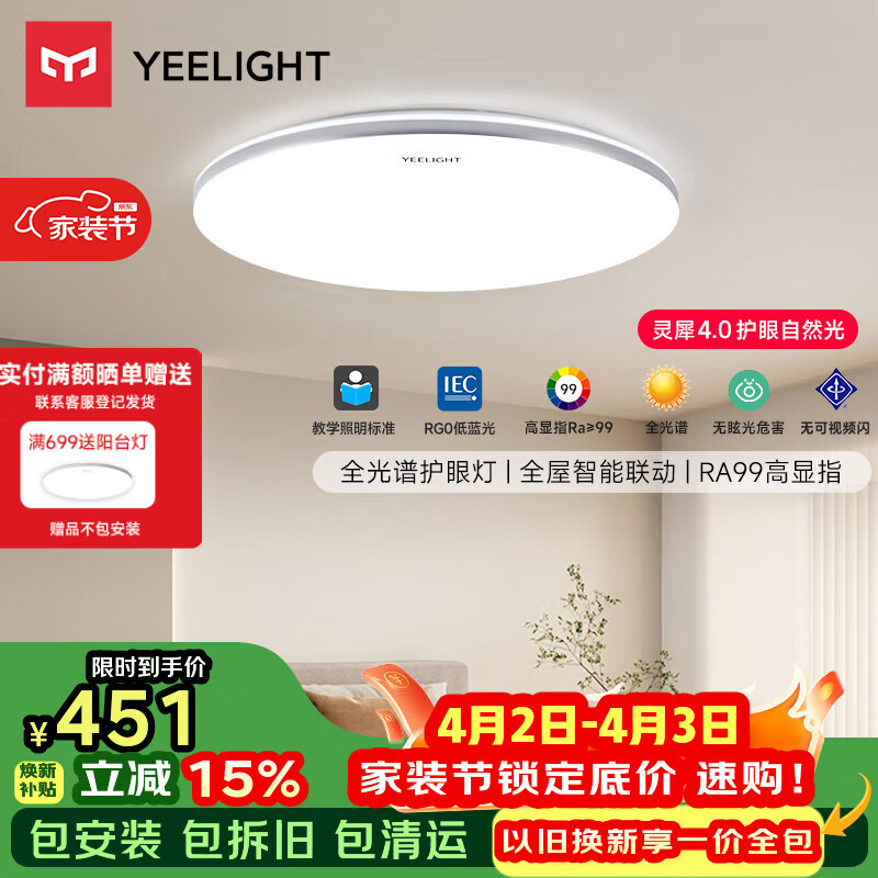 Yeelight【一价全包】易来led全光谱护眼吸顶灯客厅卧室智能灵犀4.0C500