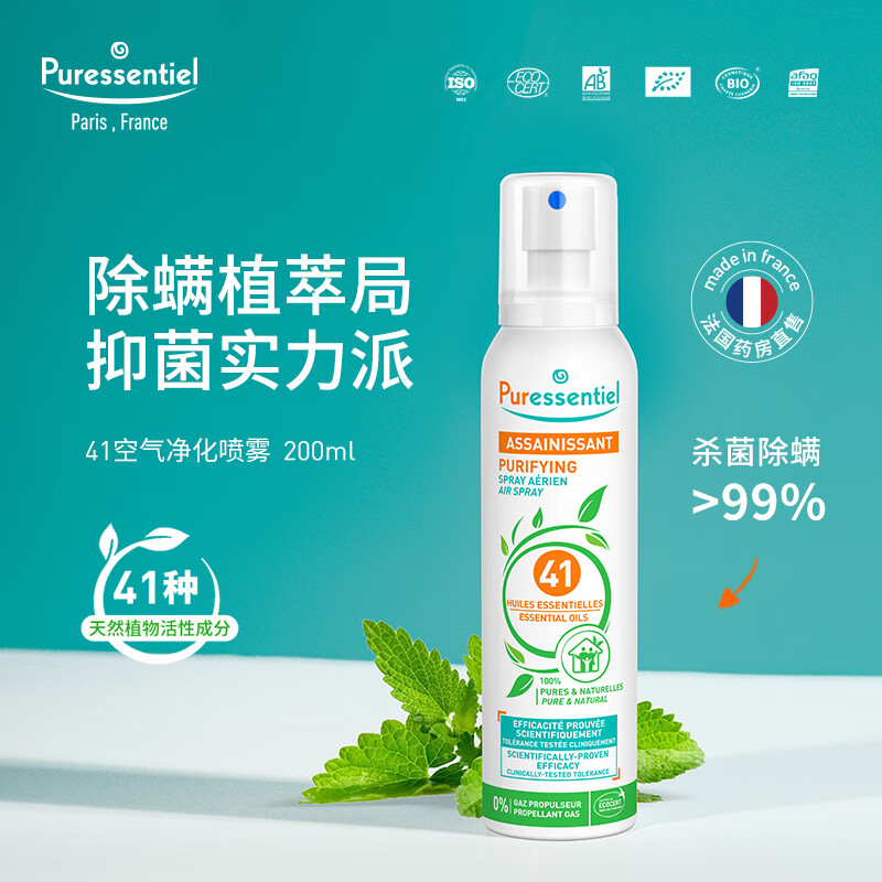 璞医香(Puressentiel) 除螨喷雾200ml 41精油杀菌除臭