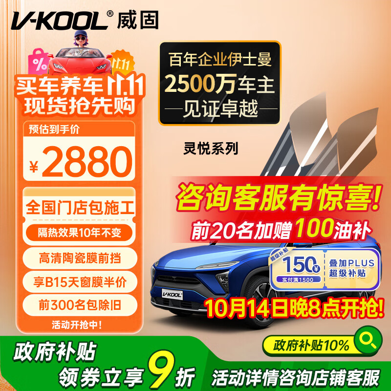 威固(V-KOOL)新能源汽车贴膜 灵悦系列 全车玻璃膜隔热膜防晒膜太阳膜防爆膜 国际品牌