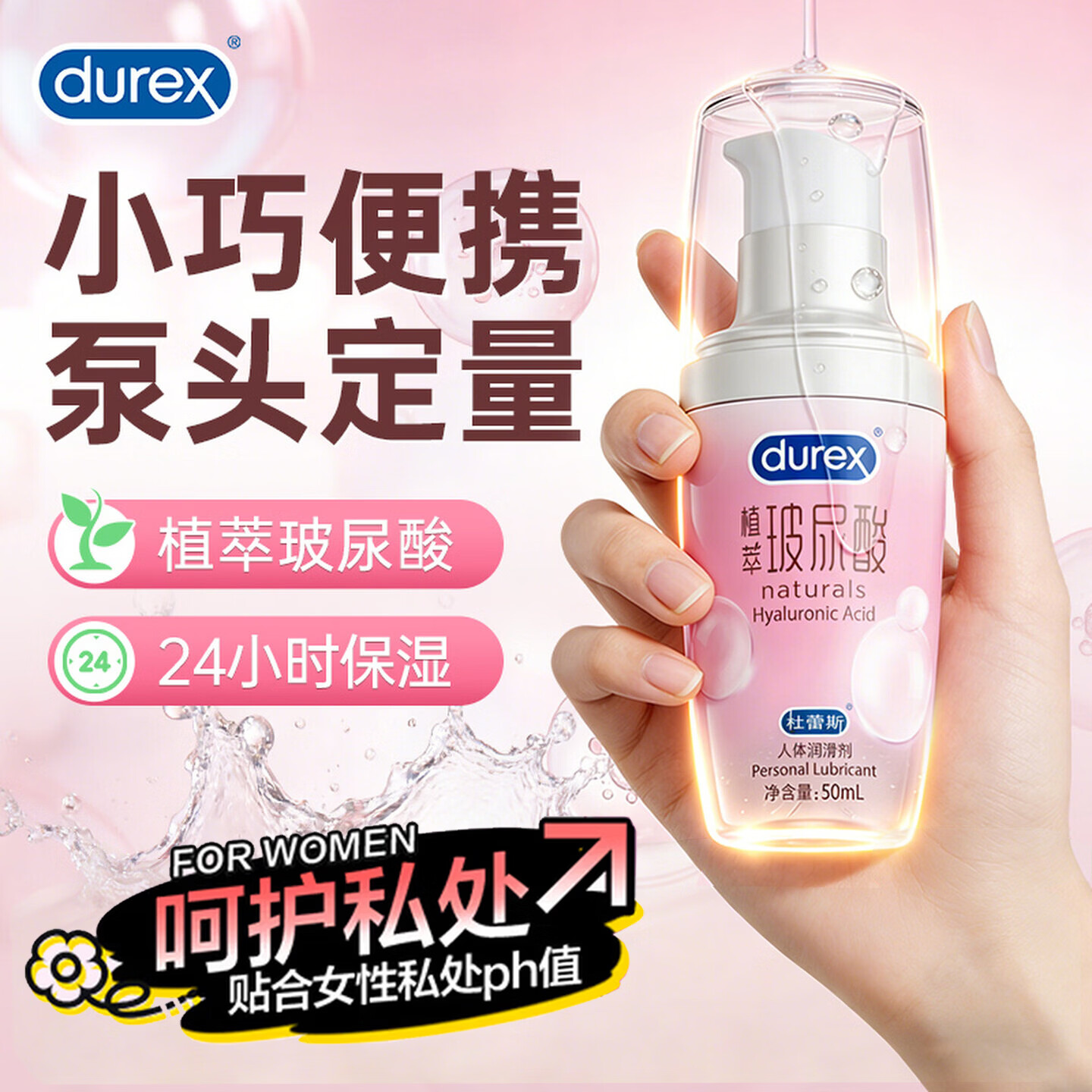 杜蕾斯(durex)玻尿酸快感人体润滑液油剂夫妻私处房事用免洗可舔持久润滑情趣 【女性呵护】植萃玻尿酸50ml