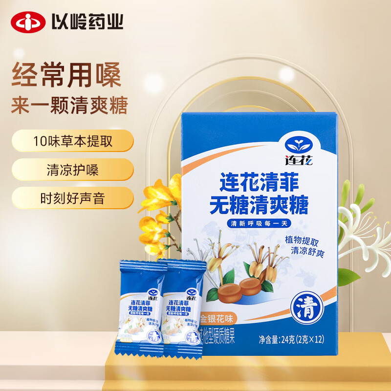 以岭连花清菲无糖清爽糖金银花胖大海薄荷等植物提取清凉 0糖12粒/盒