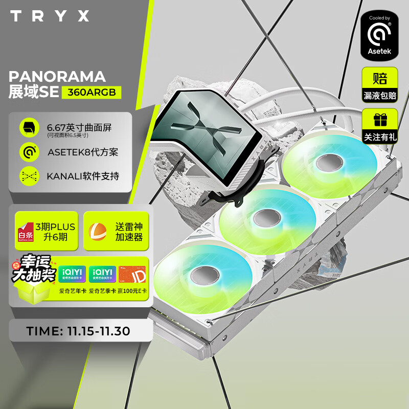 TRYX(创氪星系)PANORAMA 展域SE 360水冷cpu散热器ARGB白 6.67英寸曲面屏/Asetek/KANALI软件/裸眼3D