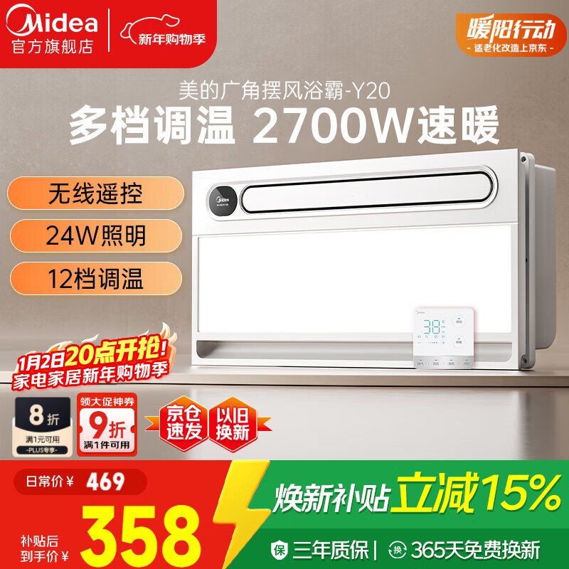 美的(Midea)风暖浴霸云帆系列取暖吹风照明一体遥控浴霸Y20集成吊顶卫生间