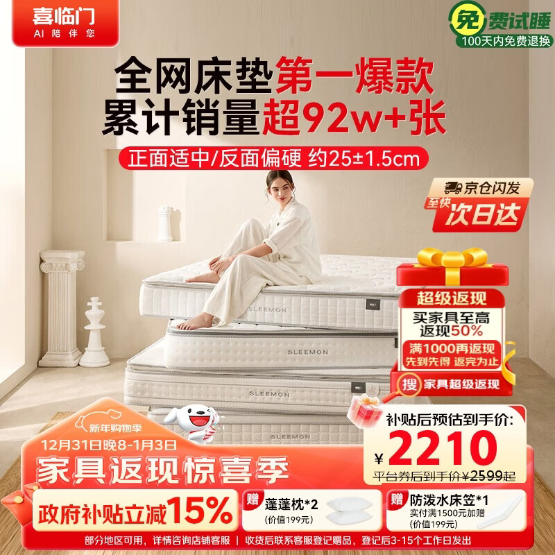 喜临门白骑士plus 2cm乳胶独袋弹簧床垫舒脊黄麻床垫 1.8x2米 软硬适中