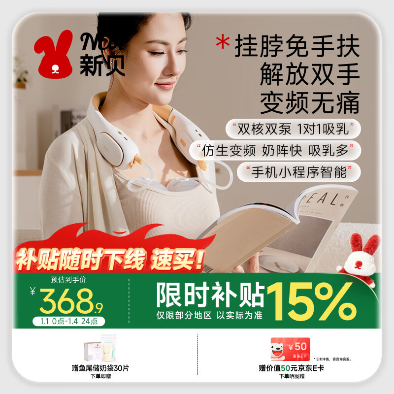 新贝吸奶器 电动吸奶器免手扶无痛全自动便携挂脖式双边大吸力8168