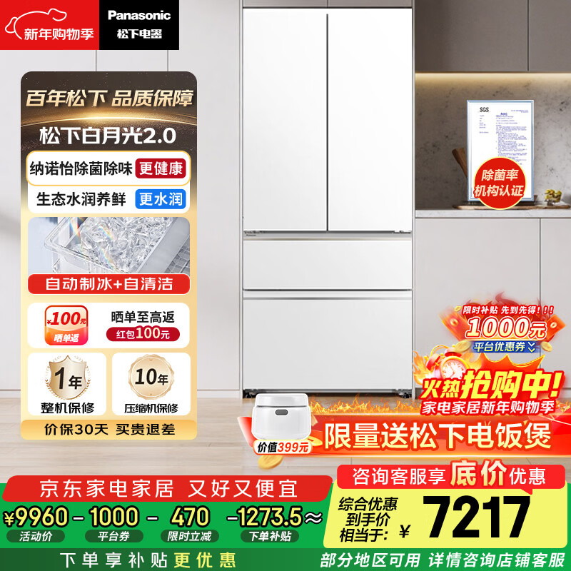 松下(Panasonic)白月光2.0 515L法式多门冰箱家用超薄零嵌入式自动制冰一级能效NR-ED52APB-W【国家补贴】
