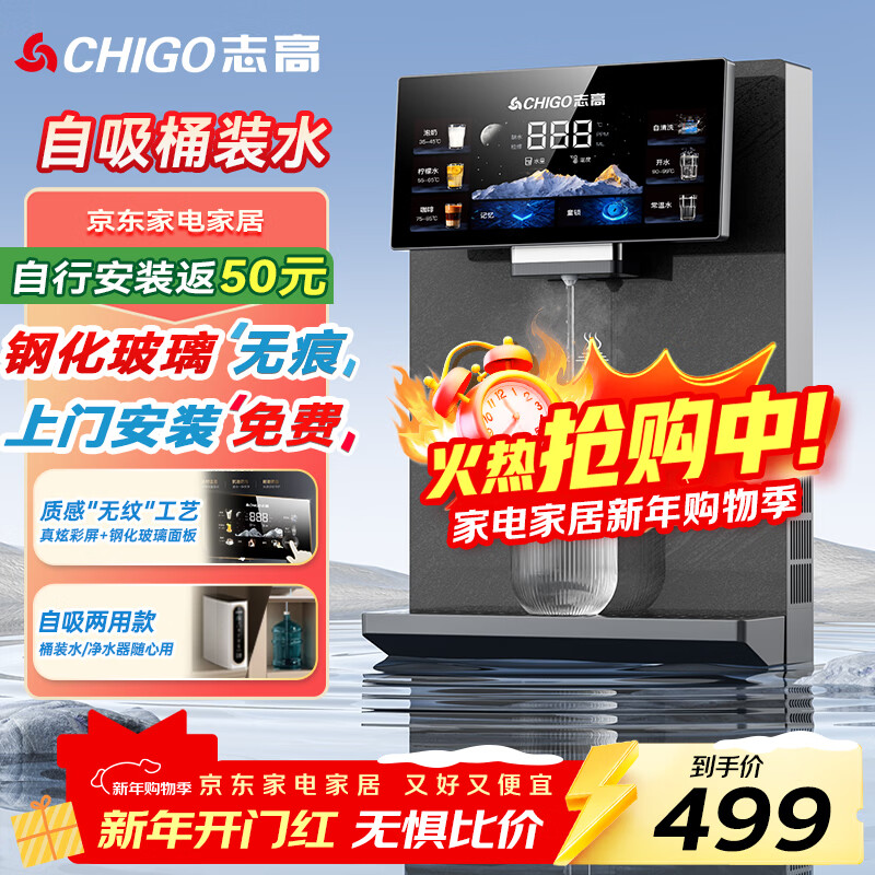 志高(CHIGO)壁挂式管线机接桶装水自吸 直饮机餐边柜饮水机 净水器伴侣 DJZ01