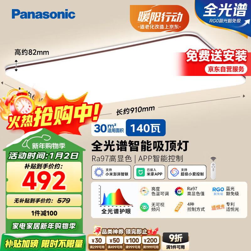 松下(Panasonic)吸顶灯全光谱智能护眼客厅大灯140瓦HHXSX164【包安装】