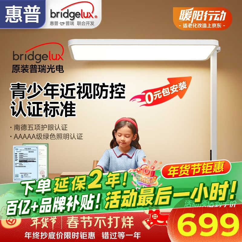 惠普近视防控普瑞光电夜学生学习阅读台灯落地儿童卧室床头护眼大路灯