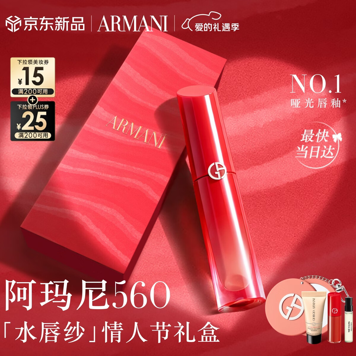 阿玛尼红管水唇纱唇釉#560春色显白桃花粉口红润唇膏生日新年情人节礼物