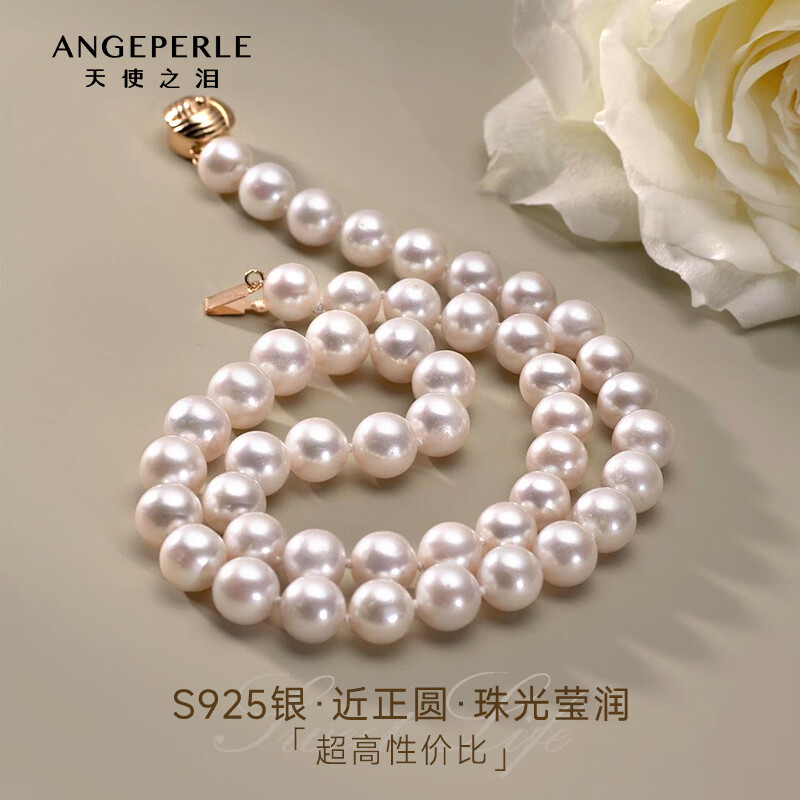 天使之泪淡水珍珠项链送妈妈9-10mm近正圆强光生日新年礼物送老婆送长辈